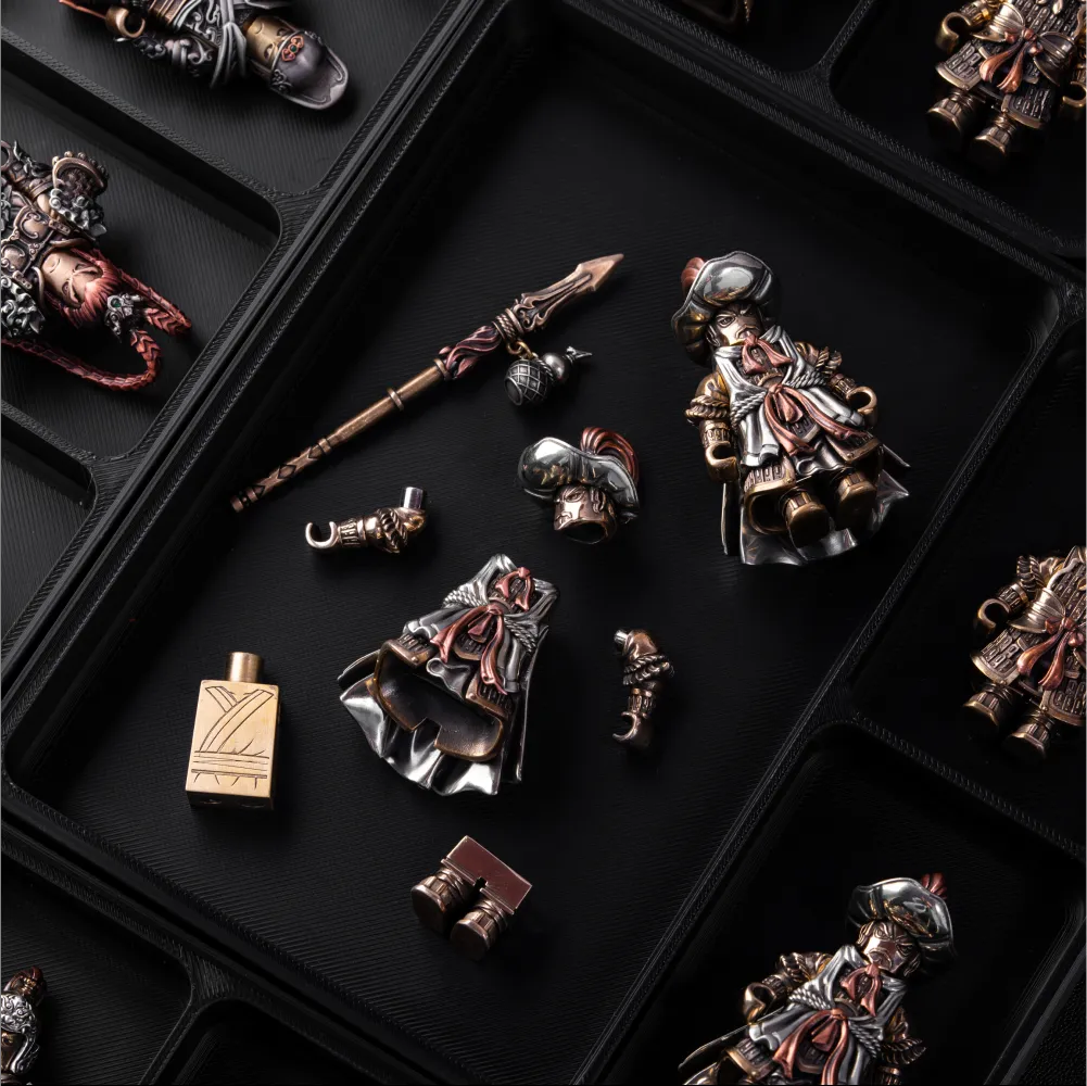 It’s solid metal (≈ 6.3 oz / 180 g) with a hand-applied patina—you can see and feel the difference. The Auto-Align N52™ mechanism snaps pieces flush with zero wobble. Close-ups show real texture, not painted plastic.